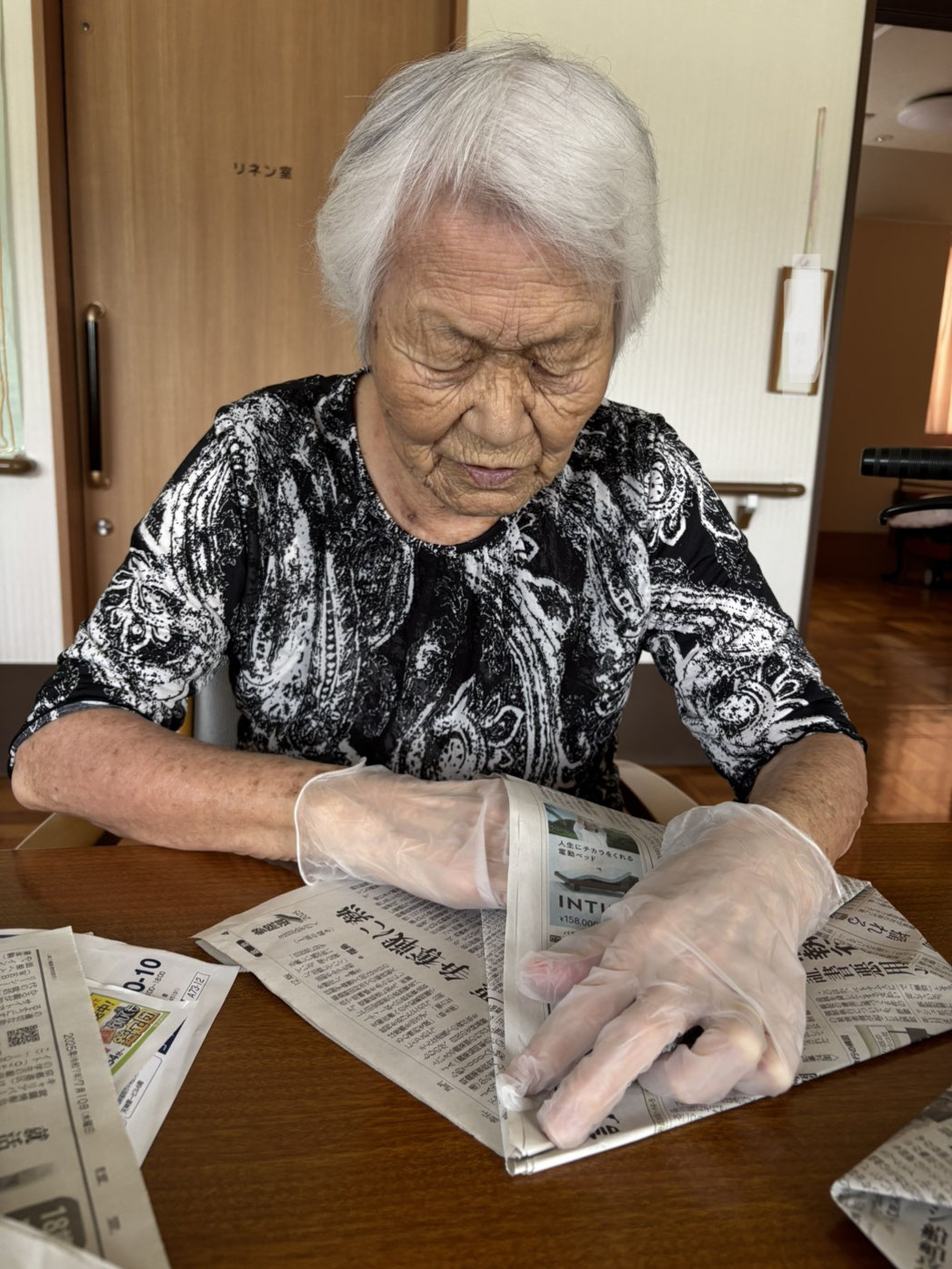 ハグニティ日記 · 2025/08/25 新聞で袋作り でも手が真っ黒になるので手袋で保護!! 丁寧に折ってくれて助かります(#^.^#) tagPlaceholderカテゴリ: グループホーム ほうばいの絆 コメントをお書きください コメント: 0